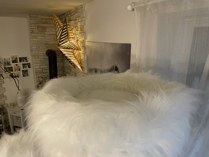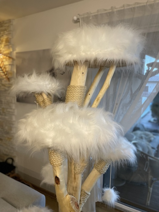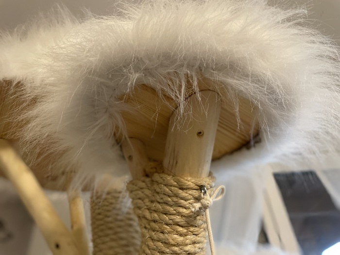 Bílá kožešina / odnímatelné dečky na dřevěných sedácích
