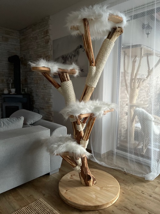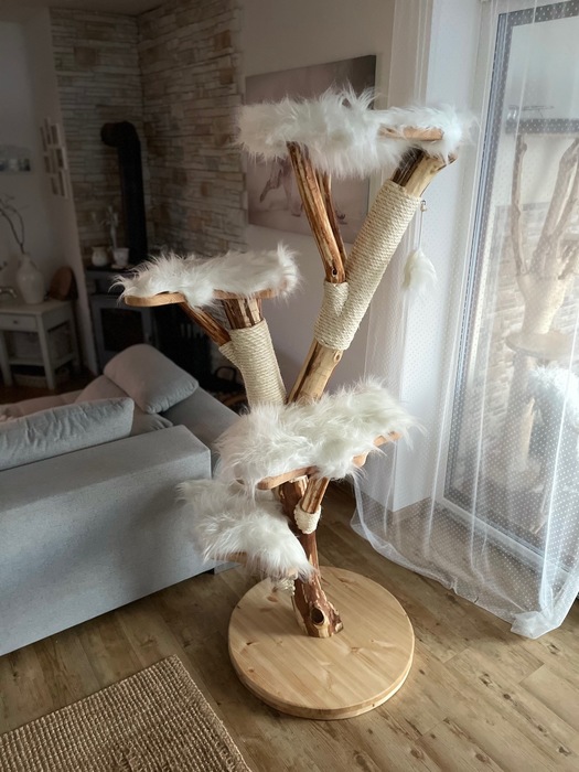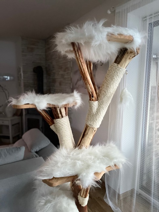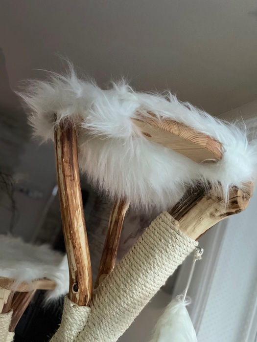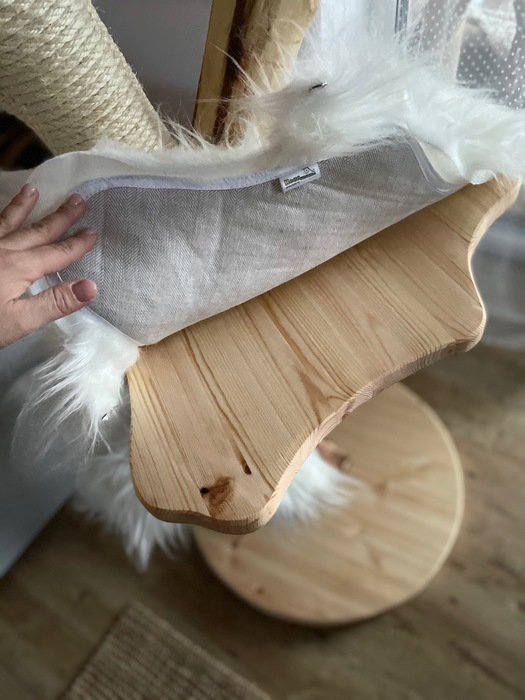 Bílá kožešina / Odnímatelné potahy na dřevěných sedácích