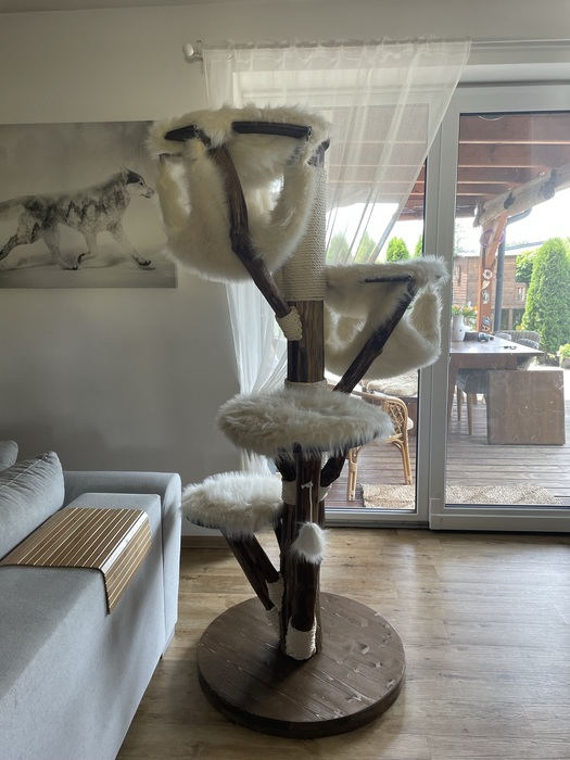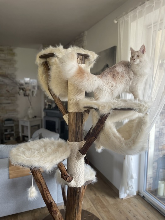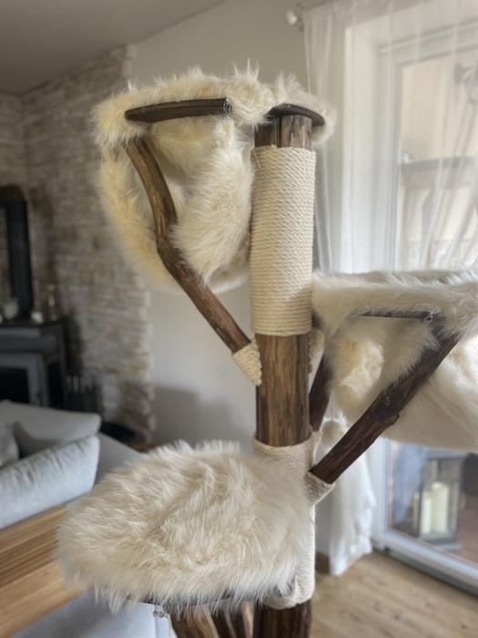 Béžová kožešinka / Odnímatelné potahy na dřevěných sedácích